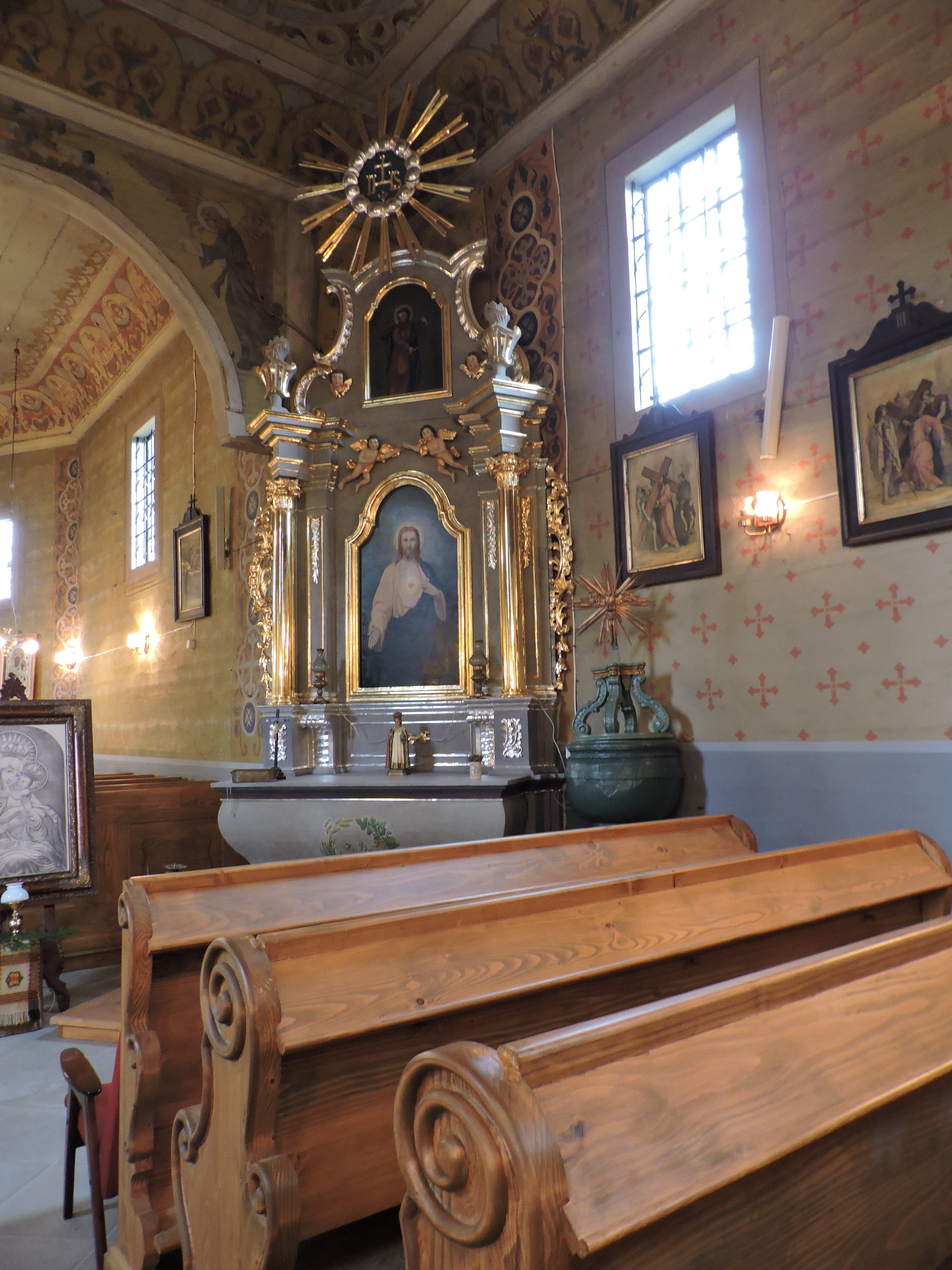 Wykonanie prac konserwatorskich przy ołtarzu bocznym z obrazami „Serce Pana Jezusa” i „Sw. Jakub Apostoł” w kościele p. w. Św. Wojciecha w Szymbarku.