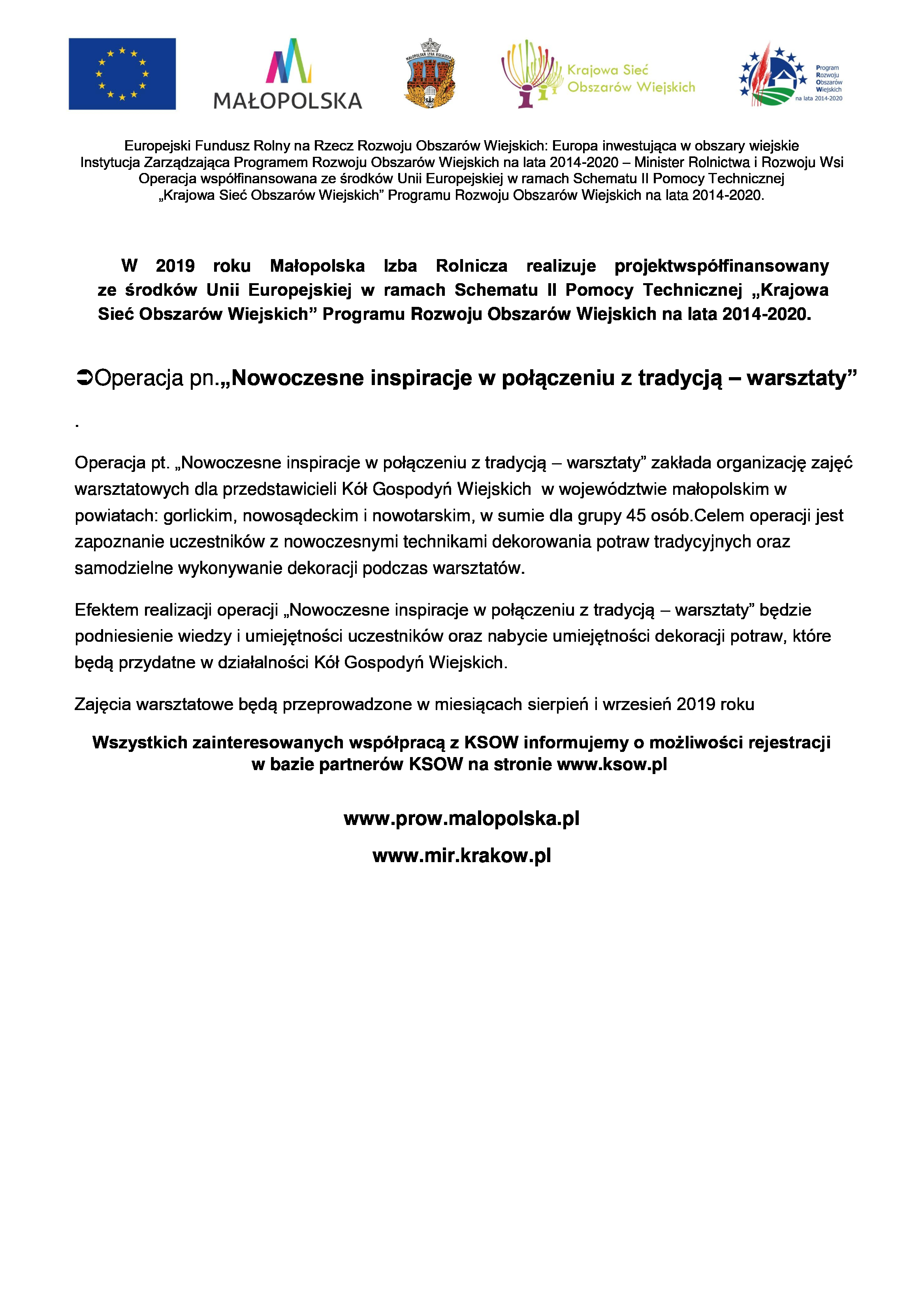 Szczegółowe informacje na stronie internetowej: www.malopolska.pl