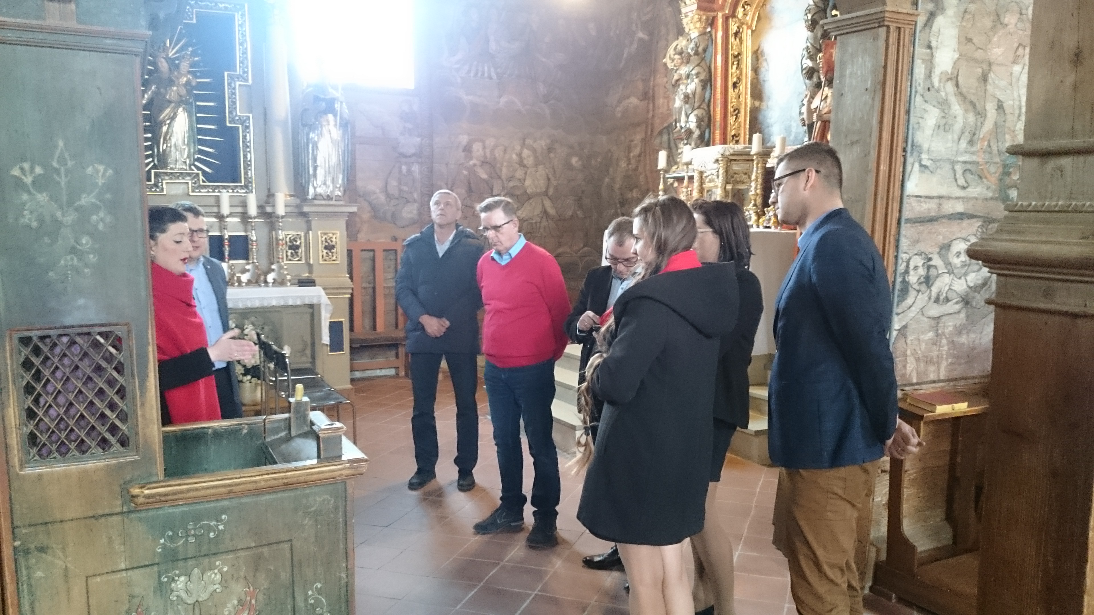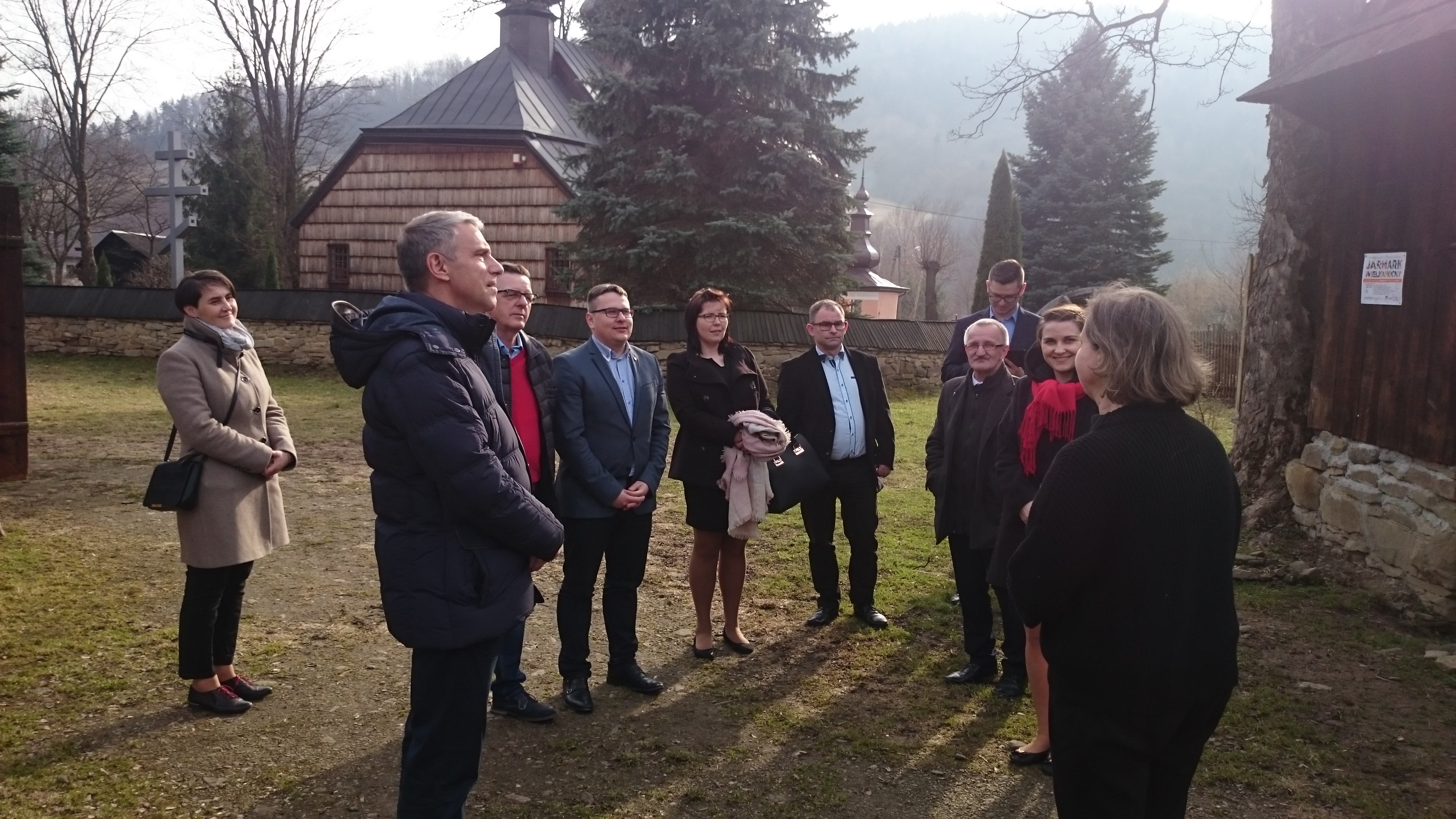 W kolejnym dniu wizyty zaprezentowaliśmy naszym partnerom kilka ciekawych miejsc w powiecie gorlickim. Odwiedziliśmy zabytkowe miasto Biecz, Kasztel w Szymbarku, Zagrodę Maziarską w Łosiu oraz  Pijalnię wód mineralnych w Wysowej- Zdroju. Zwiedziliśmy również jeden z zabytków Unesco na naszym obszarze – Kościół w Binarowej.